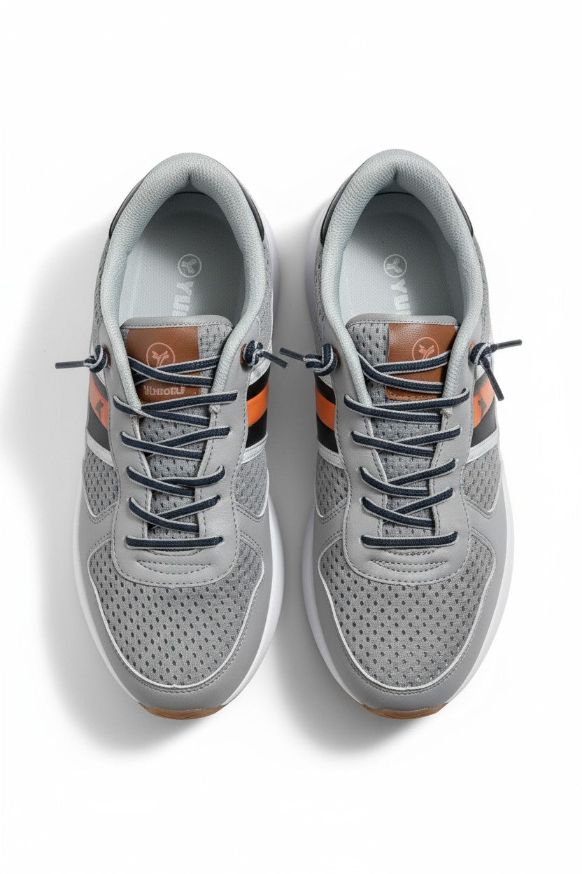 Baskets mixte grises avec détails orange et noir – Style urbain et confort absolu