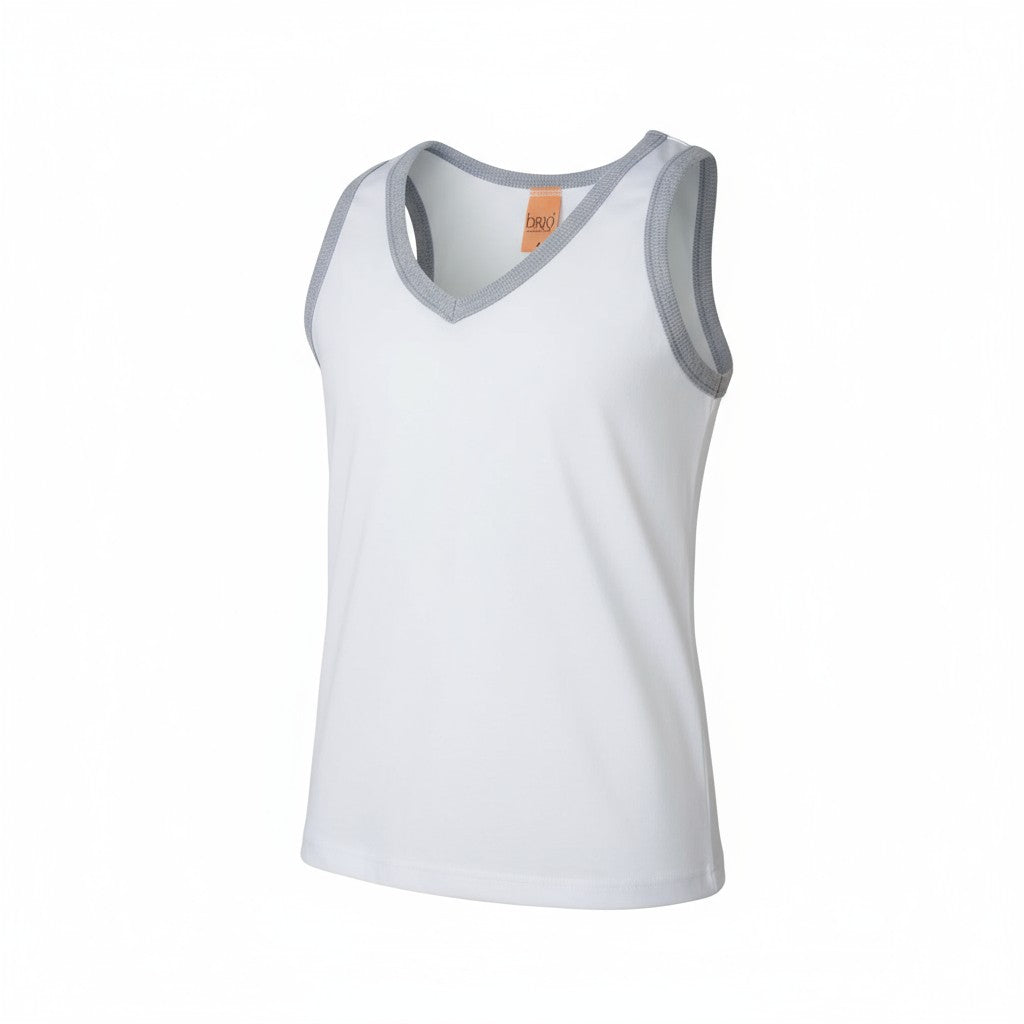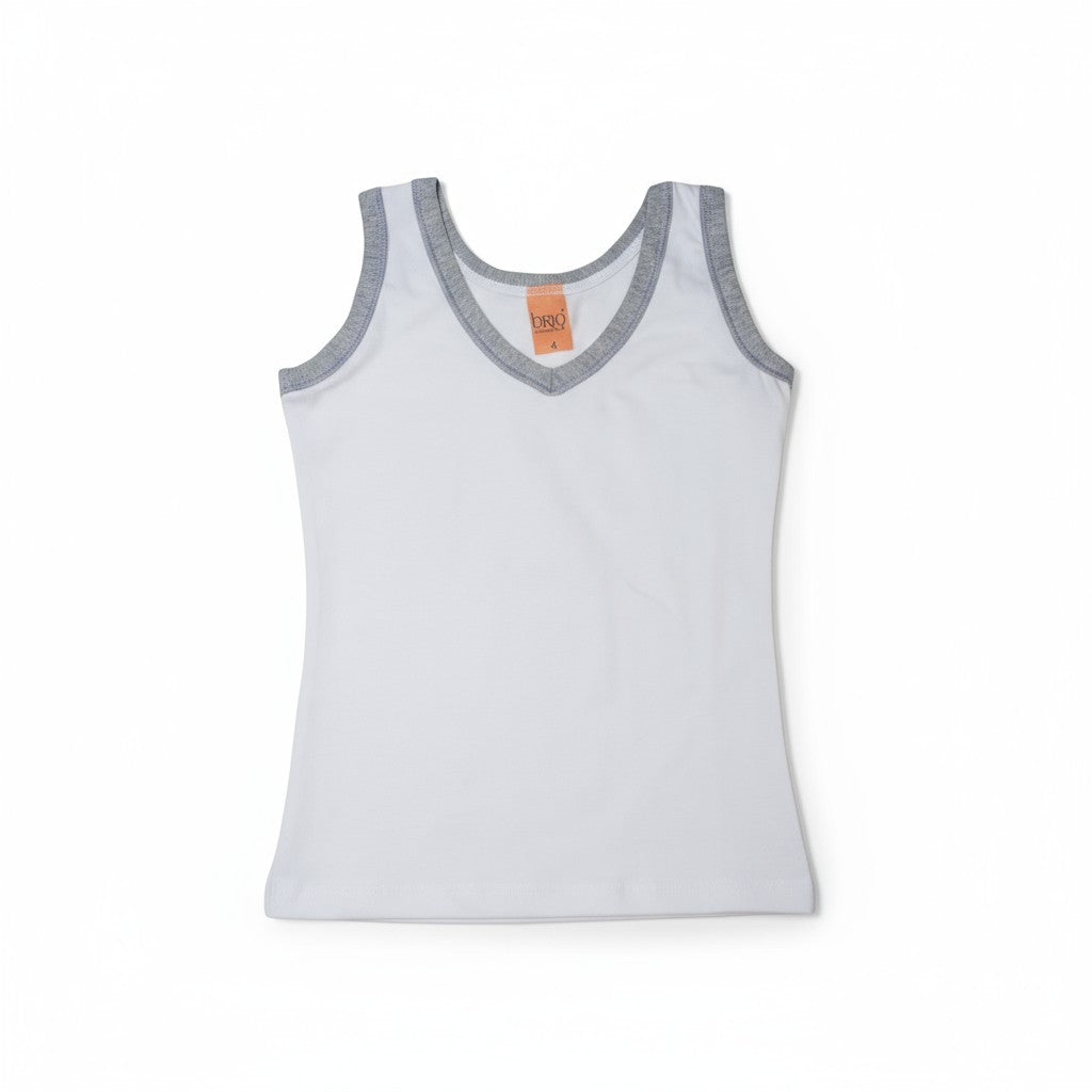 Débardeur enfant blanc à bord gris – Doux et respirant