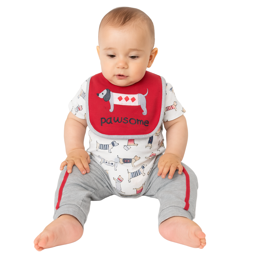 Ensemble bébé 3 pièces “Pawsome” – Body, pantalon et bavoir assorti